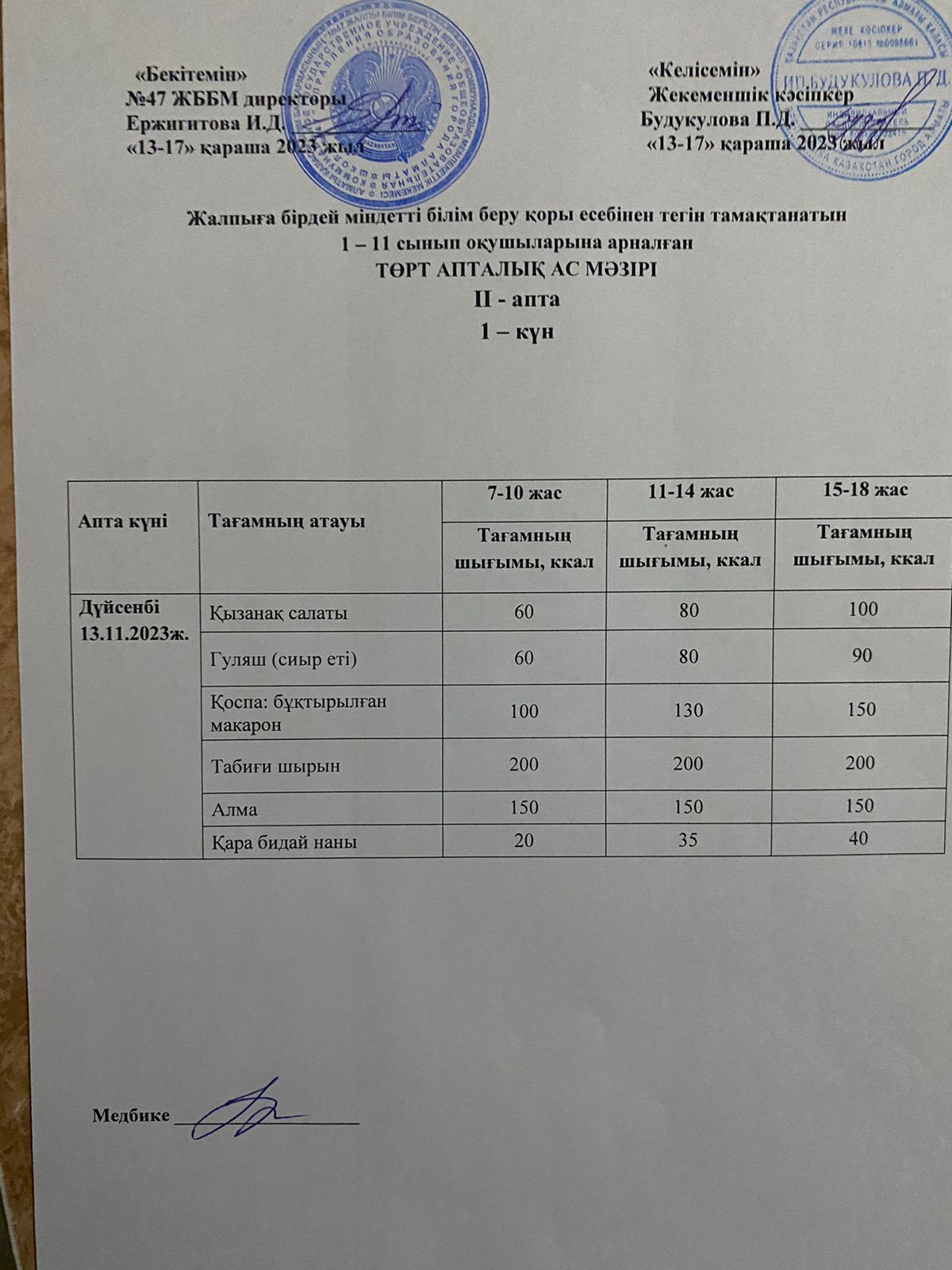 Ас мәзірі (қыс-көктем) 2- апта, 5- күн