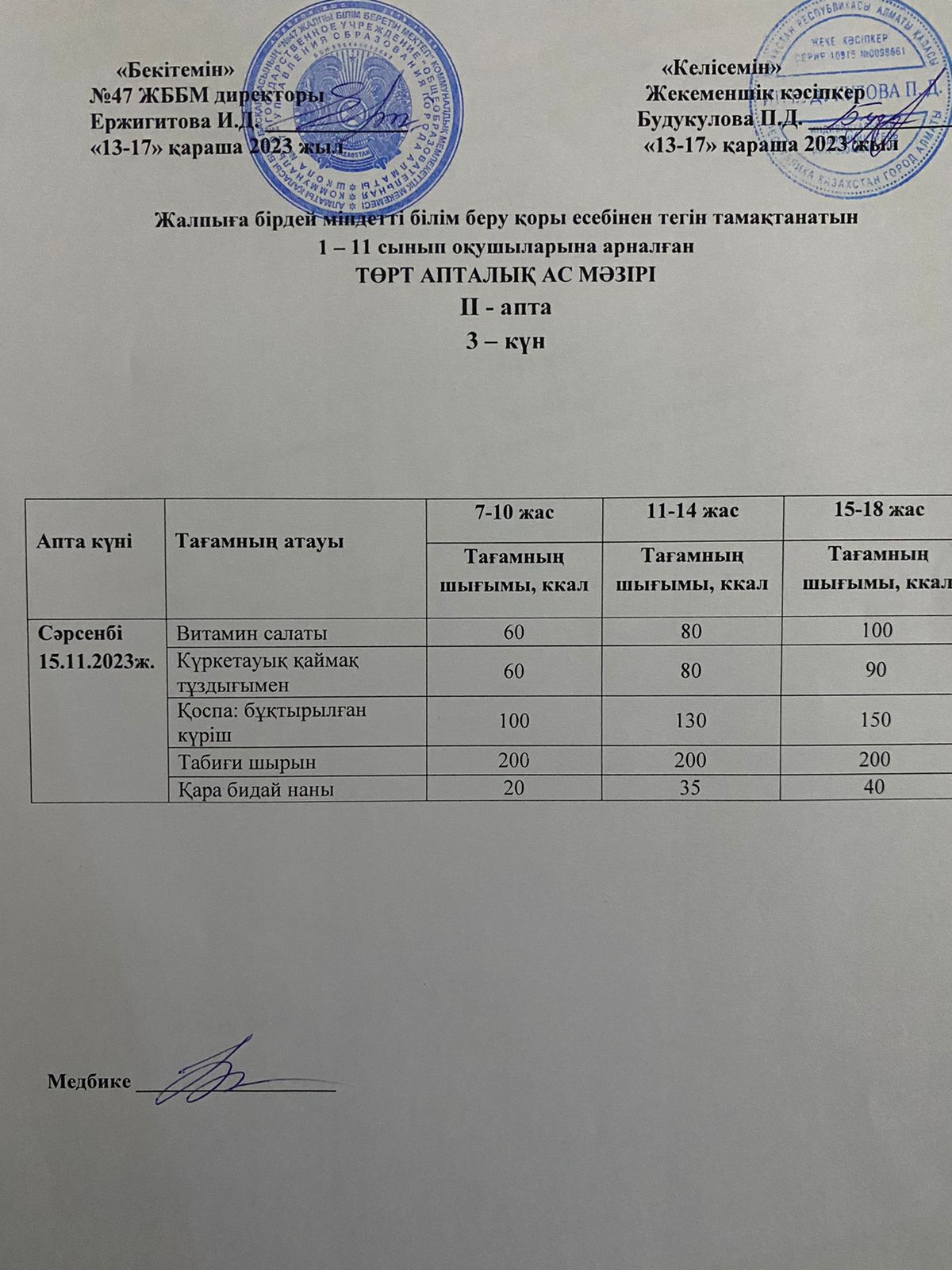 Ас мәзірі 2023-2024 оқу жылы