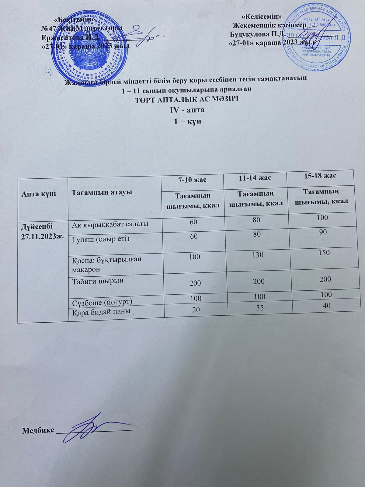 Ас мәзірі (қыс-көктем) 2- апта, 5- күн