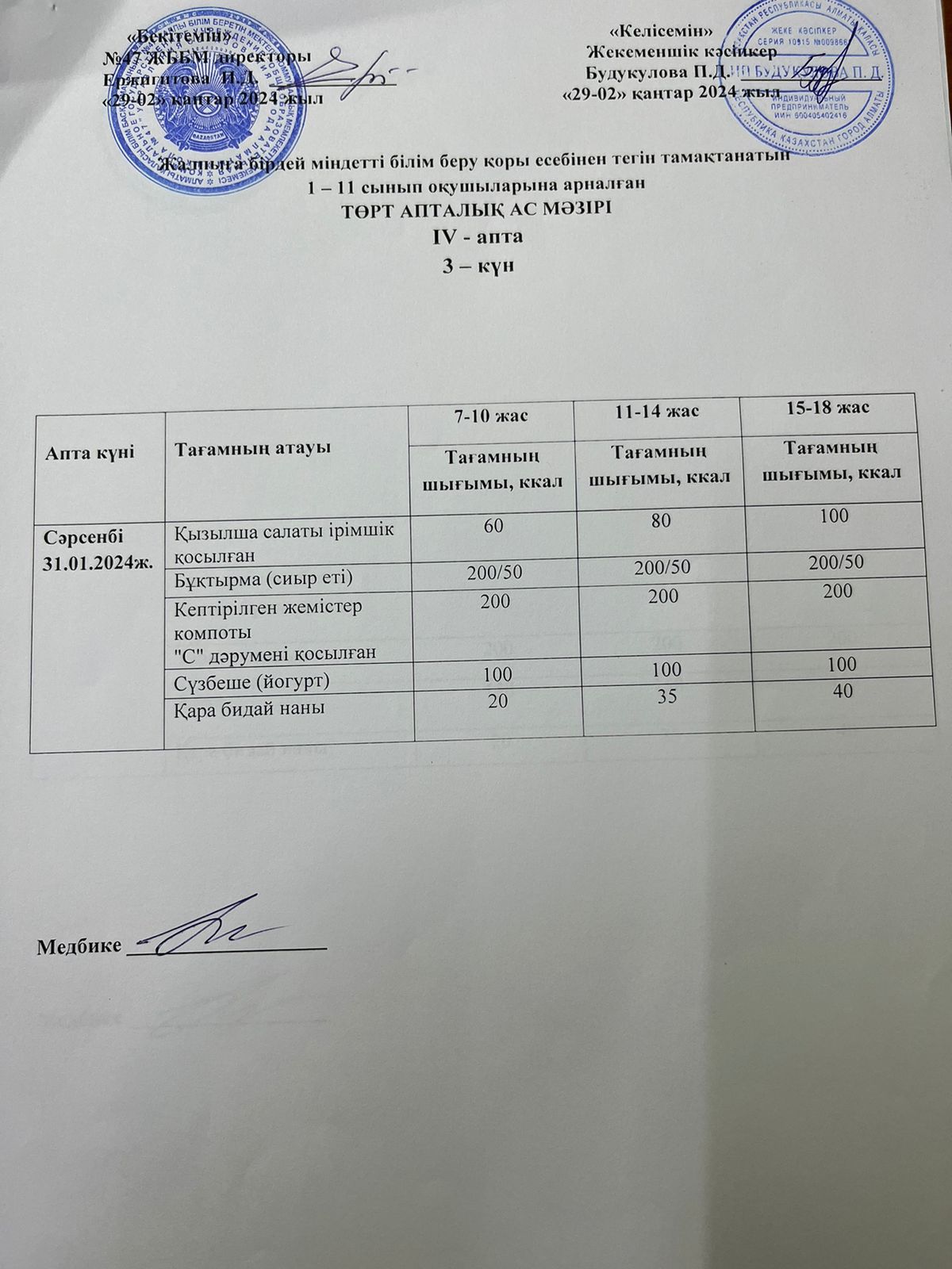 Ас мәзірі (қыс-көктем) 2- апта, 5- күн