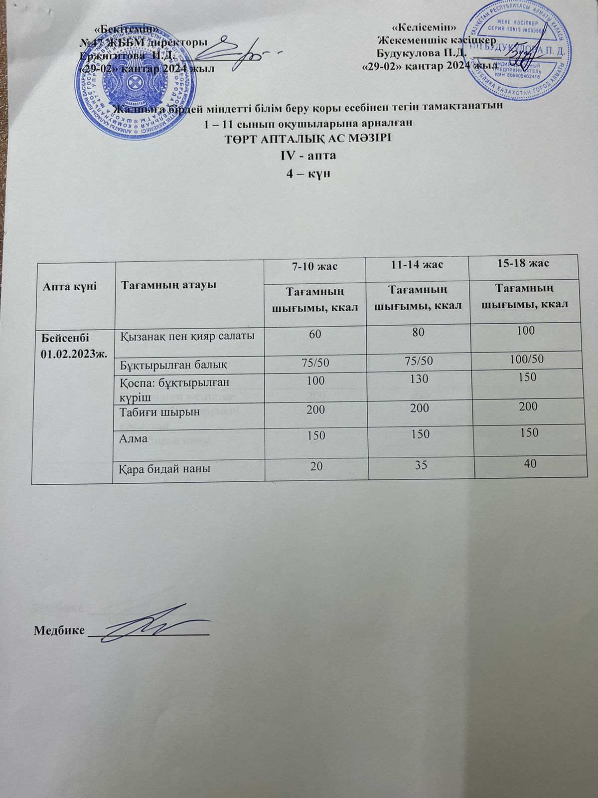 Ас мәзірі (қыс-көктем) 2- апта, 5- күн
