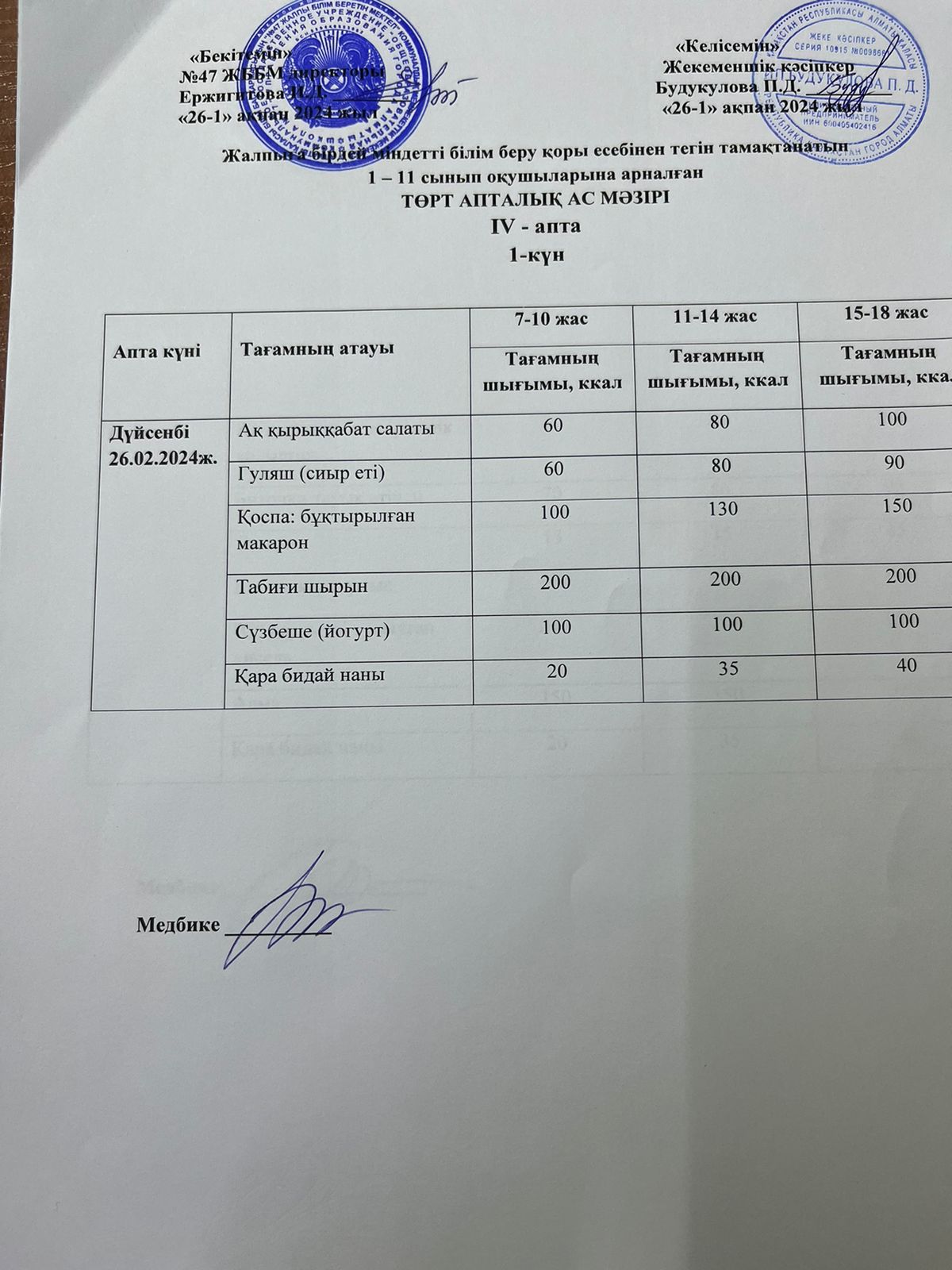 Ас мәзірі (қыс-көктем) 2- апта, 5- күн