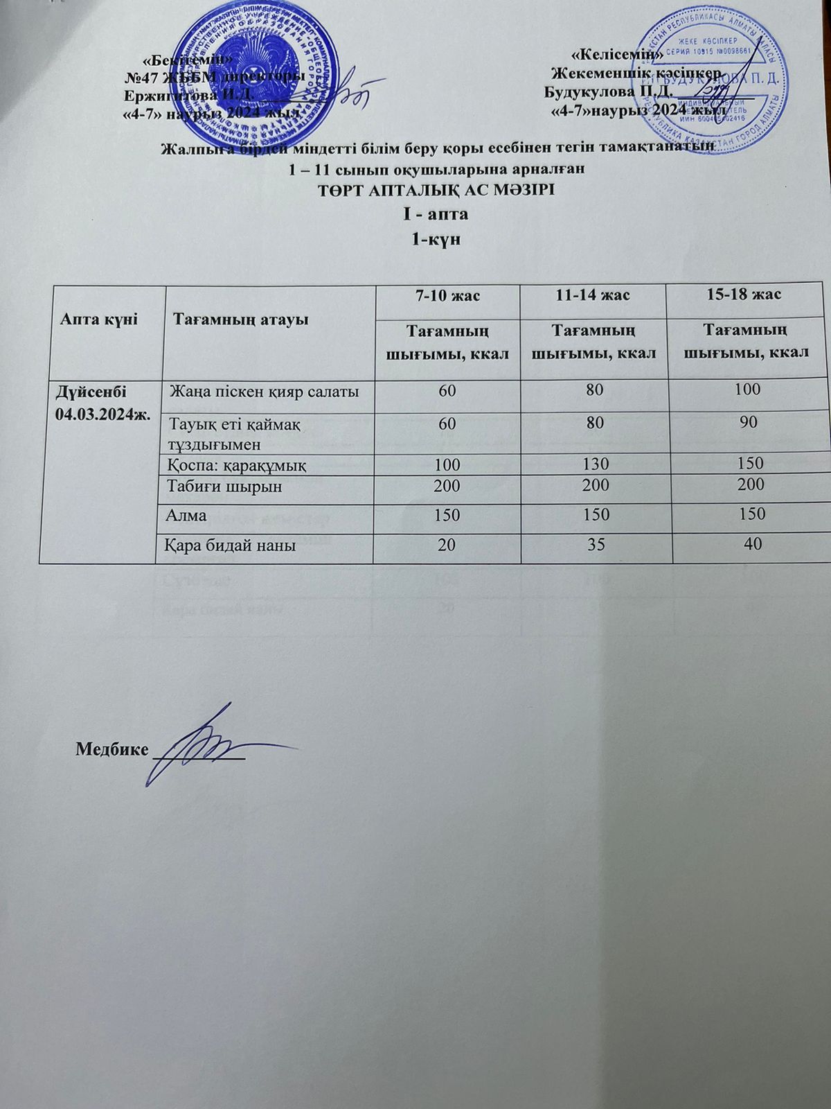 Ас мәзірі (қыс-көктем) 2- апта, 5- күн