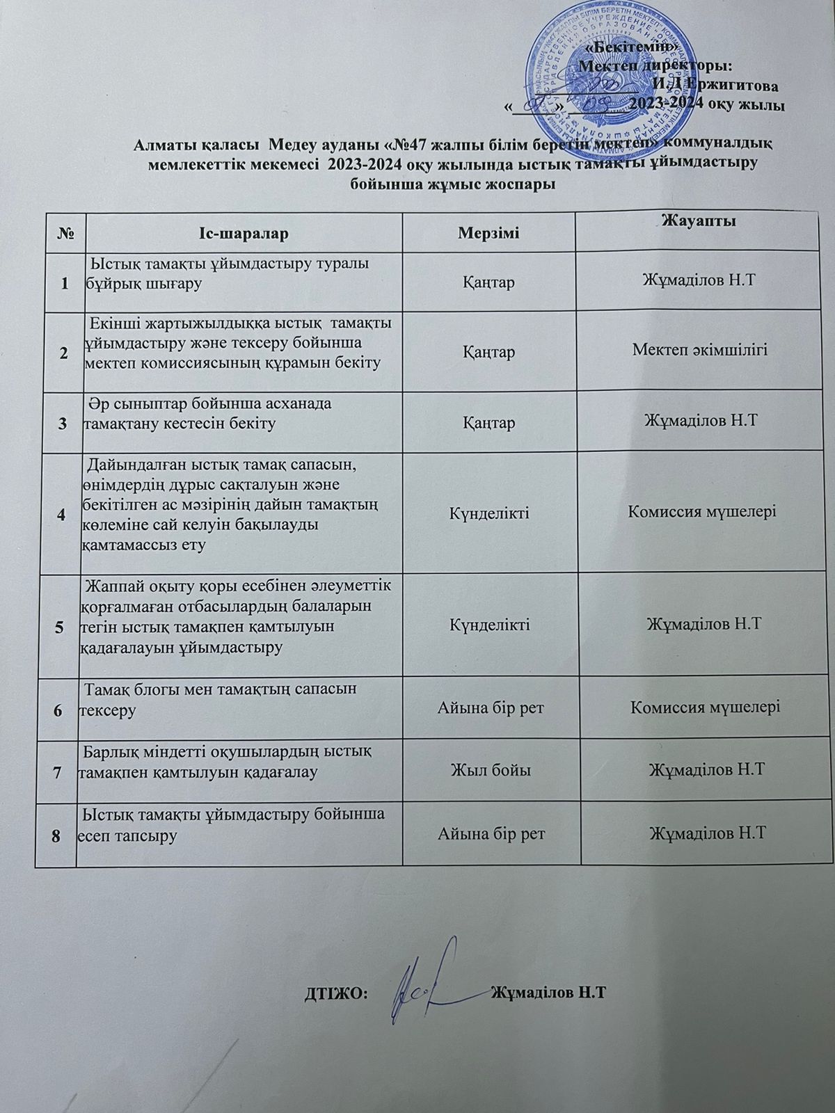 » Ыстық тамақты ұйымдастыру бойынша жұмыс жоспары