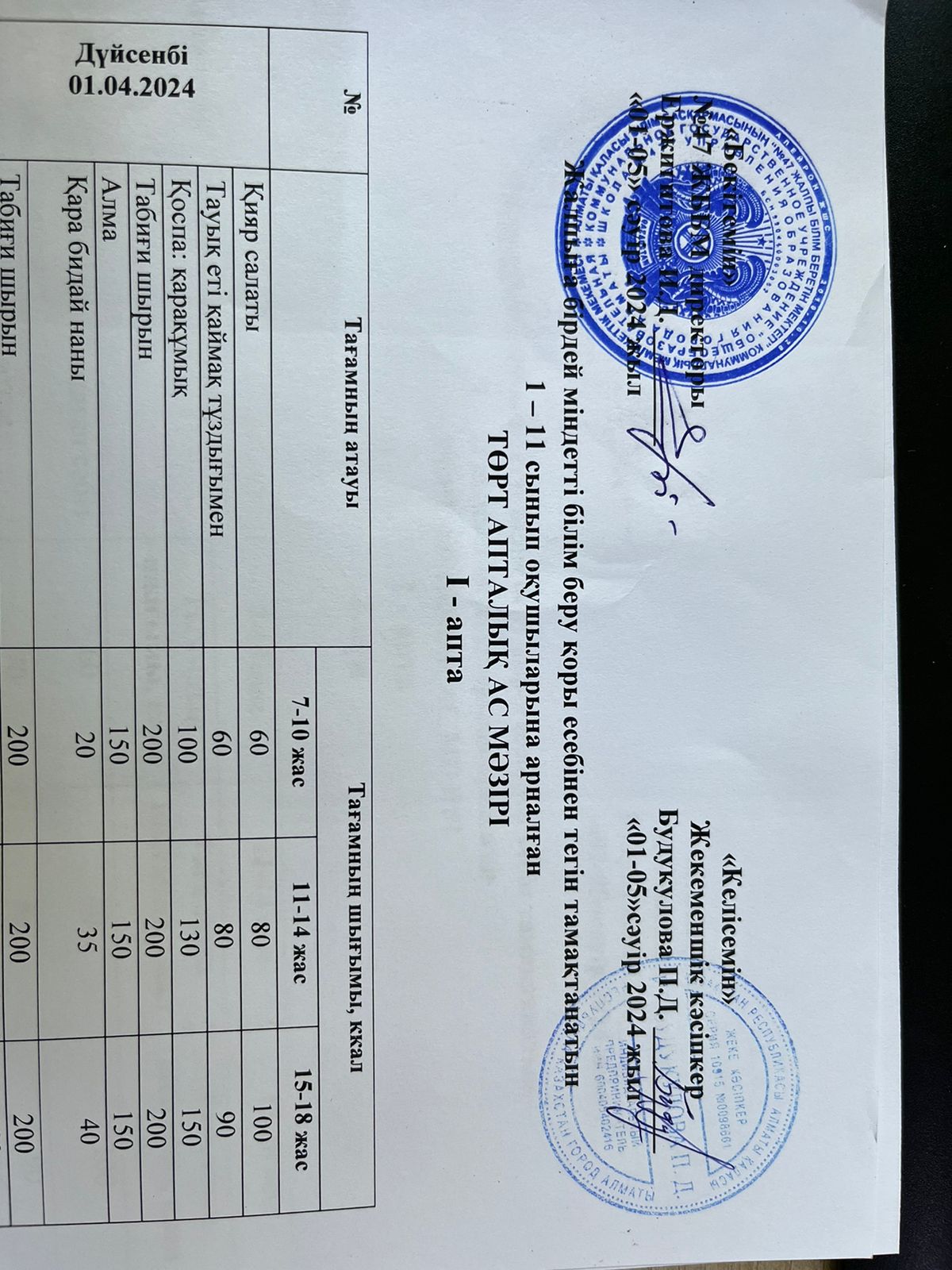 Ас мәзірі (қыс-көктем) 2- апта, 5- күн