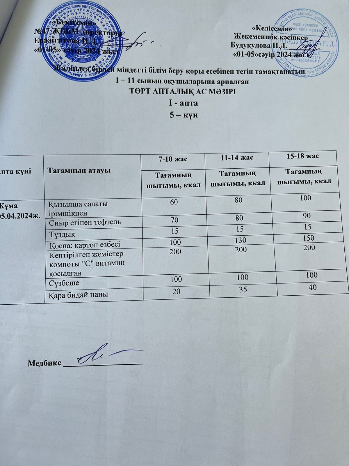 Ас мәзірі 2024-2025 оқу жылы