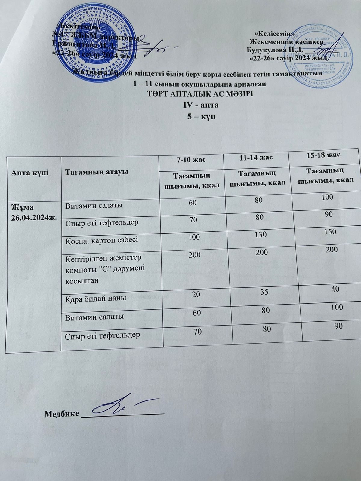 Ас мәзірі 2024-2025 оқу жылы