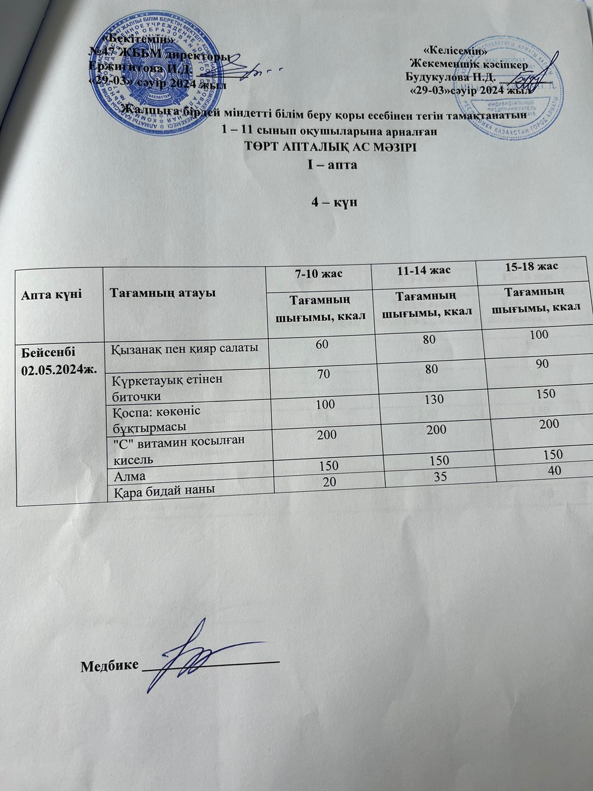 Ас мәзірі (қыс-көктем) 2- апта, 5- күн