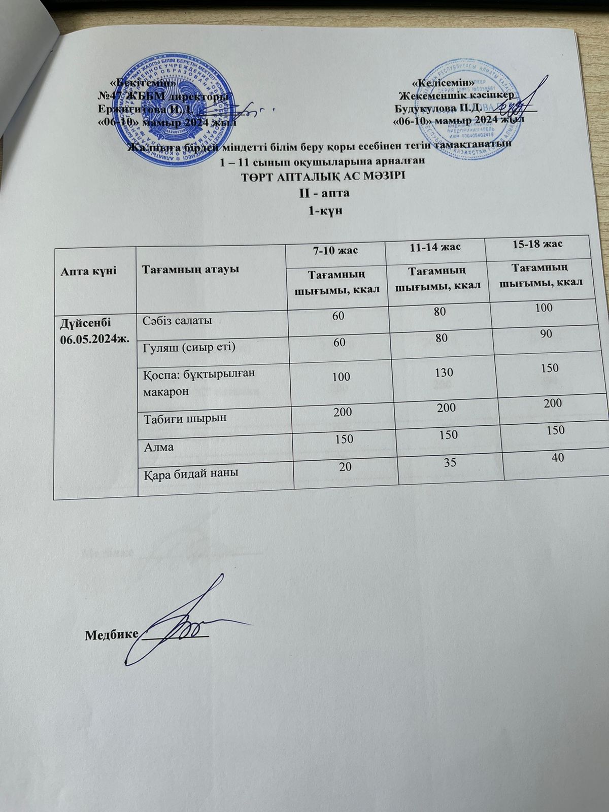 Ас мәзірі (қыс-көктем) 2- апта, 5- күн