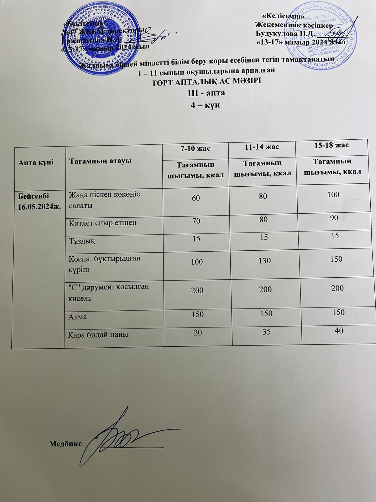 Ас мәзірі (қыс-көктем) 2- апта, 5- күн