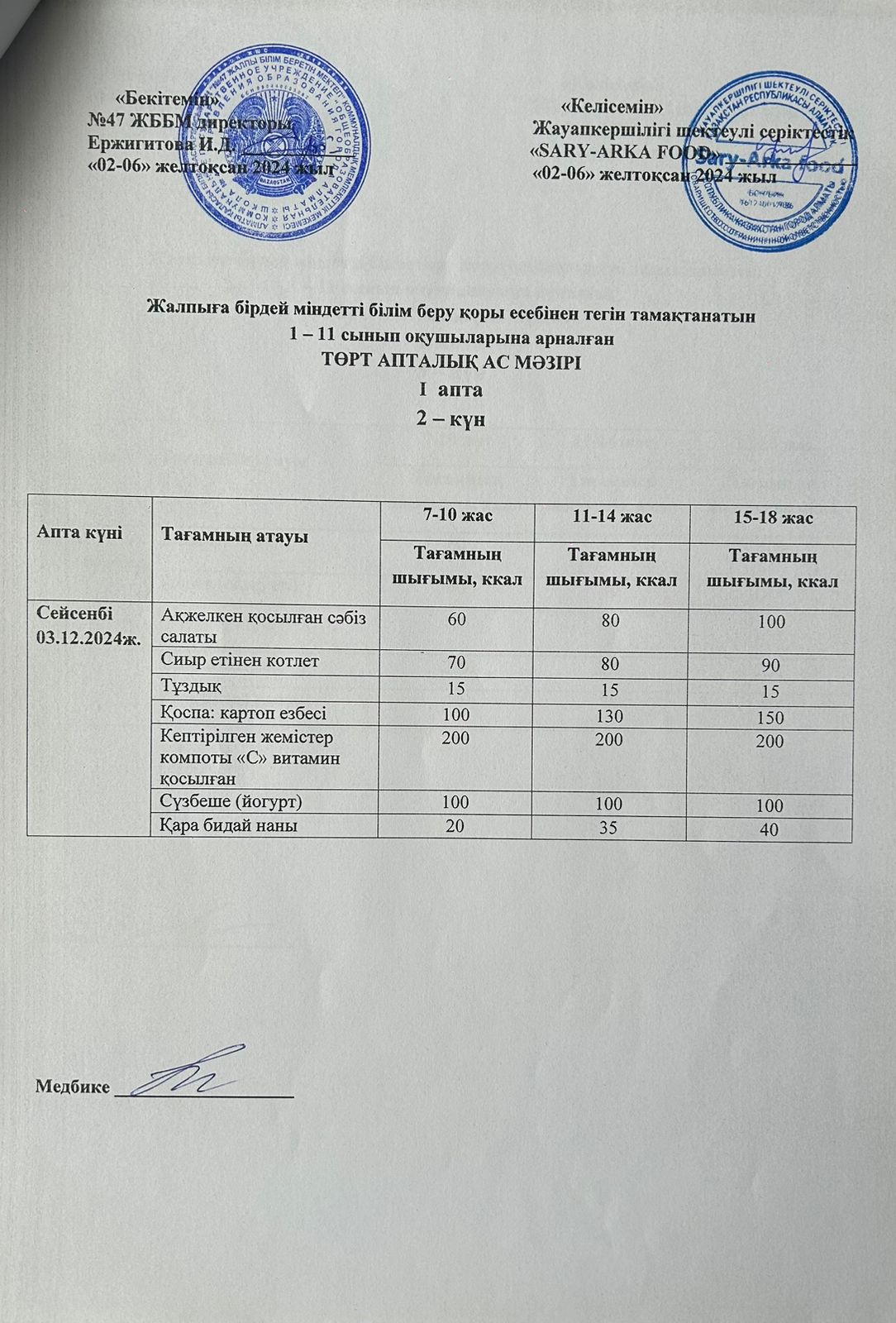 Ас мәзірі 1-апта 2-күн