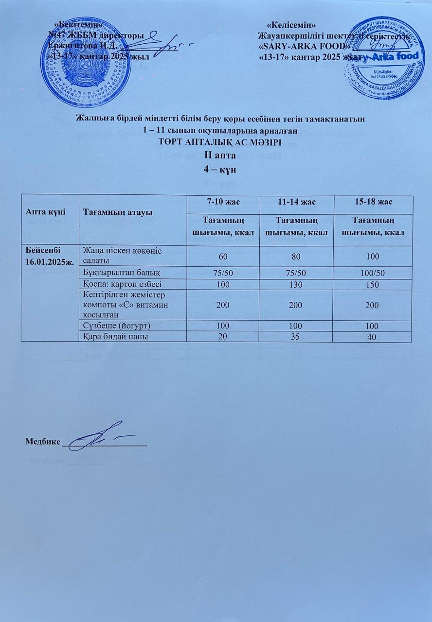 19 сентябрь 2024 Ас мәзірі 1-апта 3-күн