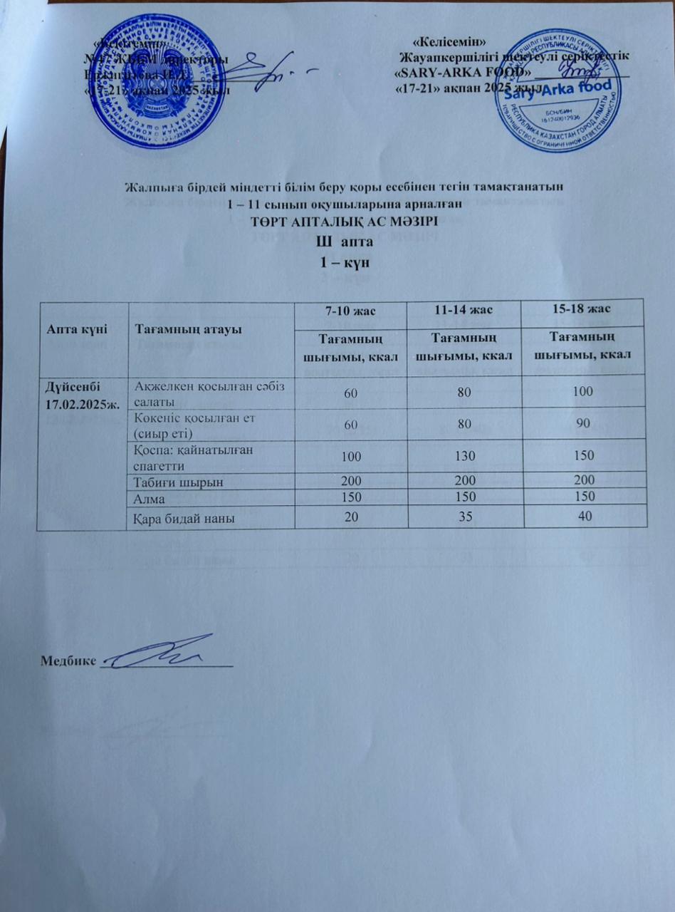 19 сентябрь 2024 Ас мәзірі 1-апта 3-күн