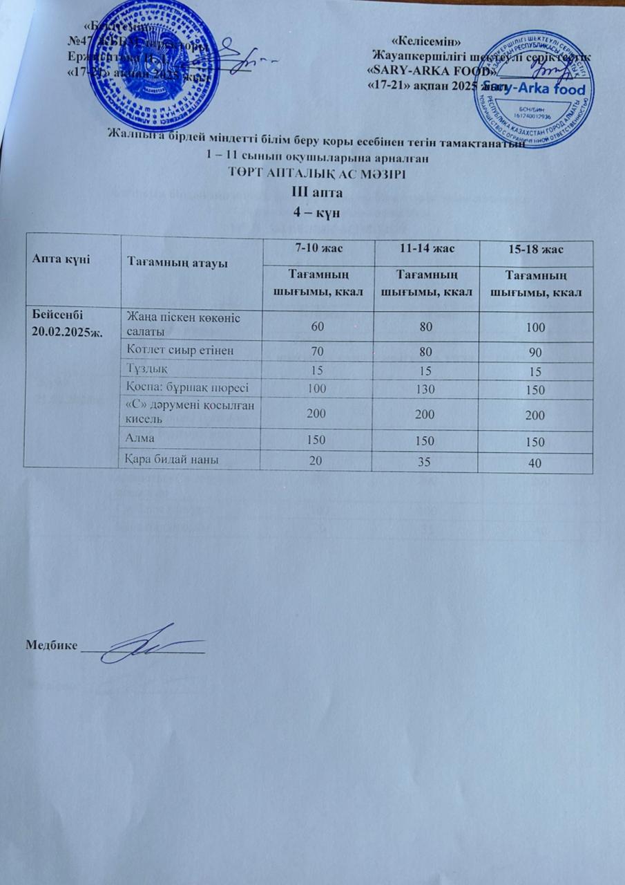 19 сентябрь 2024 Ас мәзірі 1-апта 3-күн