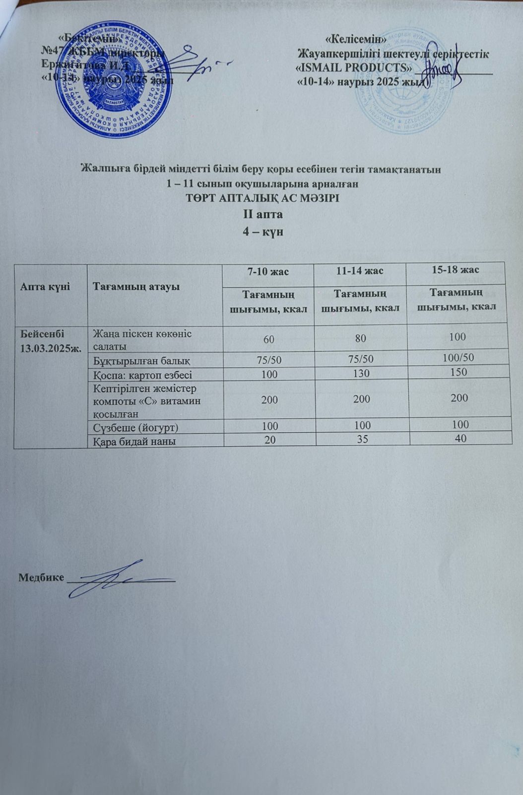 19 сентябрь 2024 Ас мәзірі 1-апта 3-күн