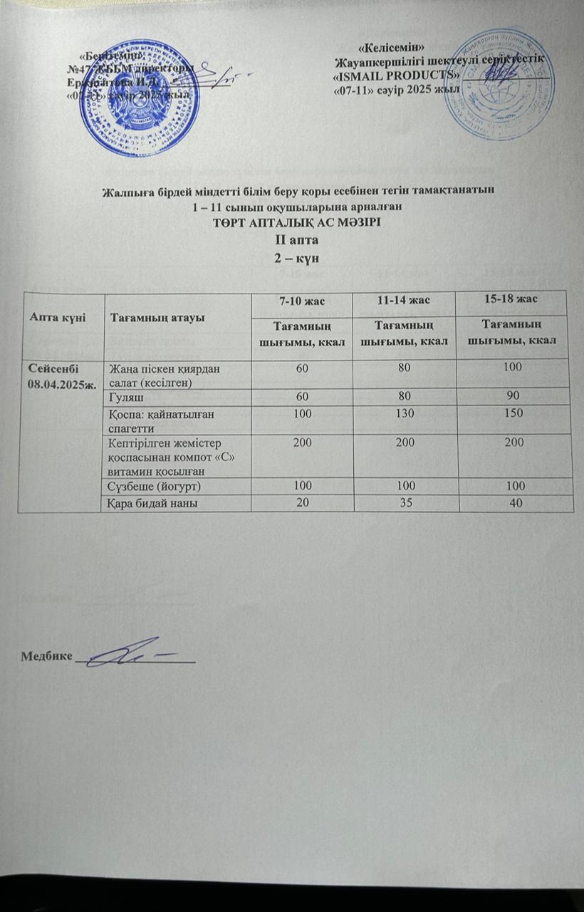 19 сентябрь 2024 Ас мәзірі 1-апта 3-күн