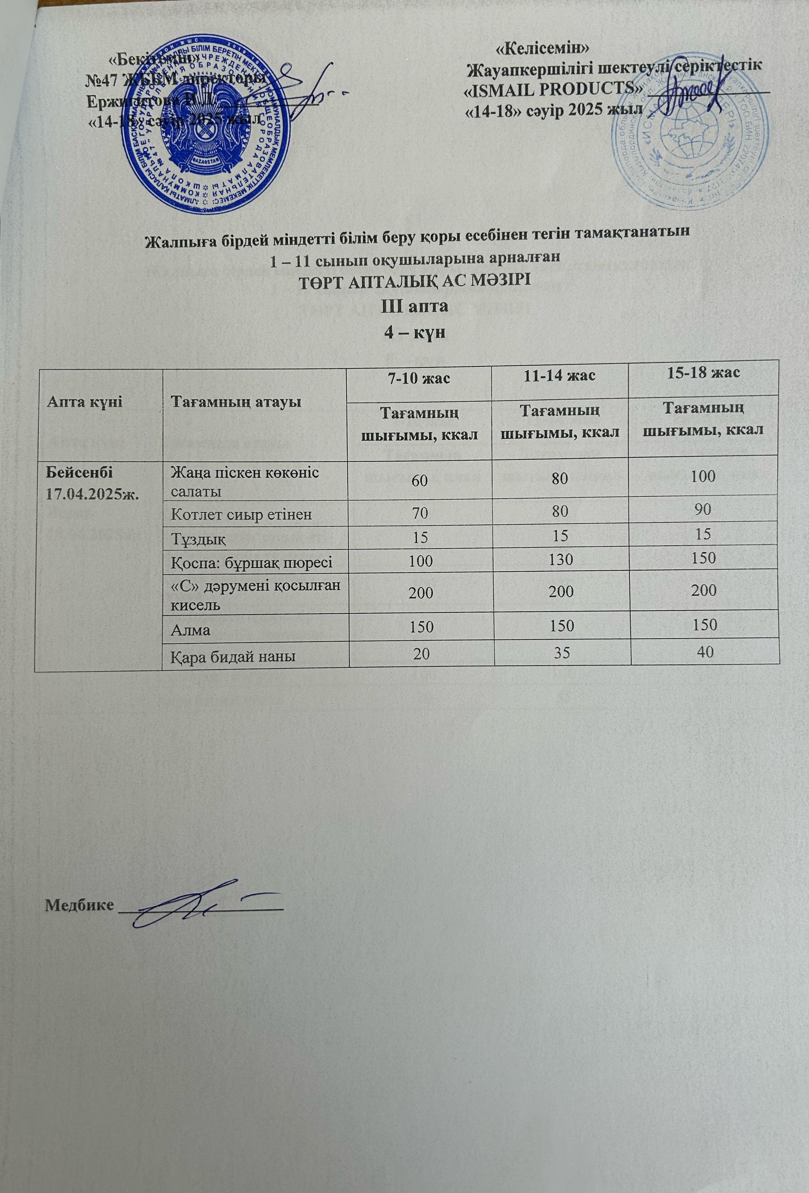 19 сентябрь 2024 Ас мәзірі 1-апта 3-күн