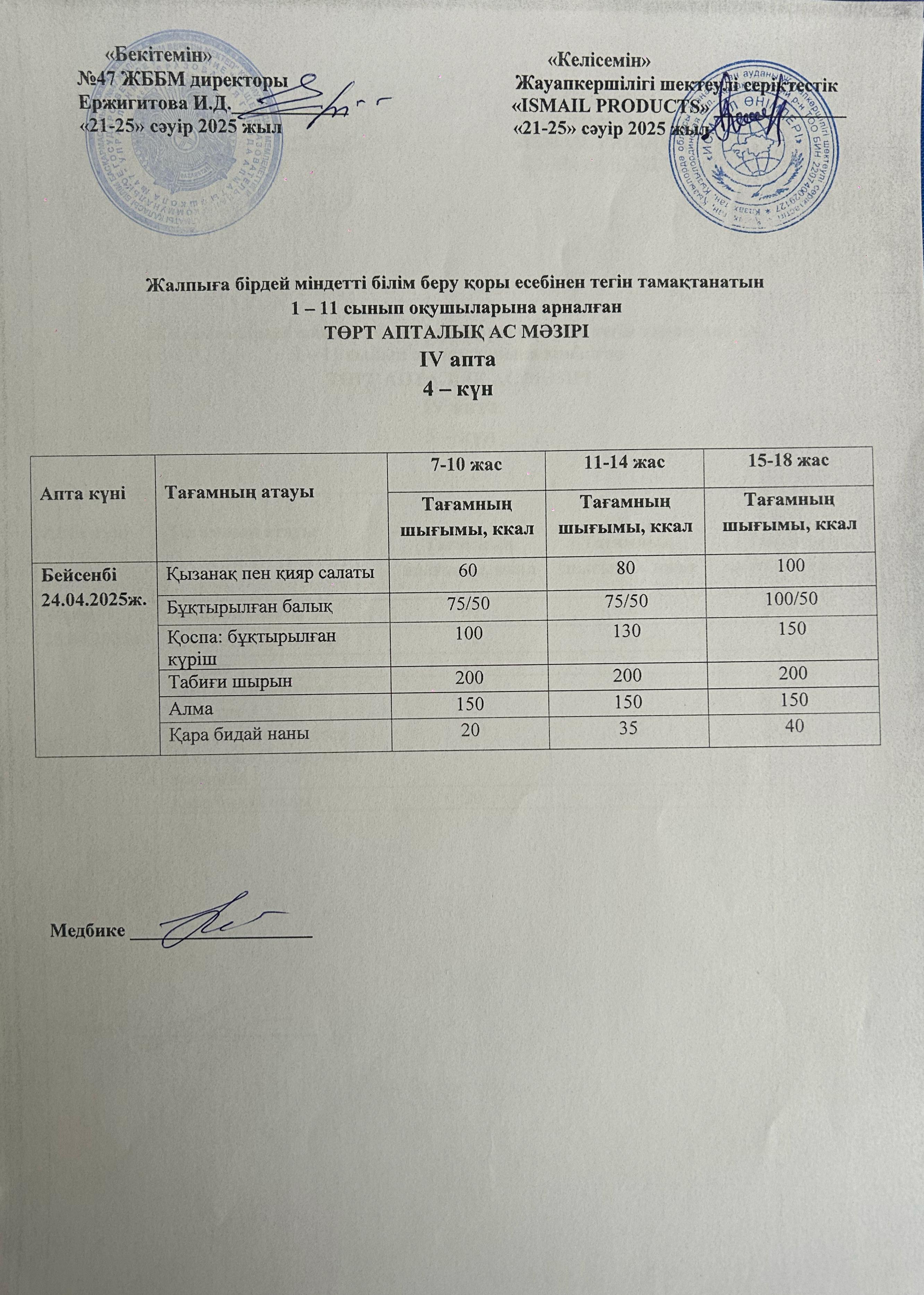 19 сентябрь 2024 Ас мәзірі 1-апта 3-күн