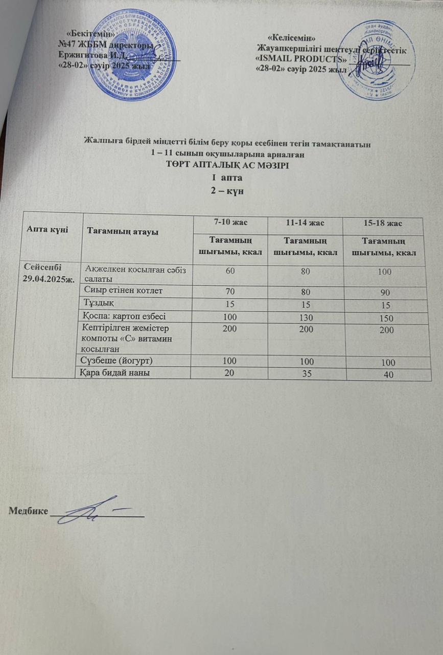 19 сентябрь 2024 Ас мәзірі 1-апта 3-күн
