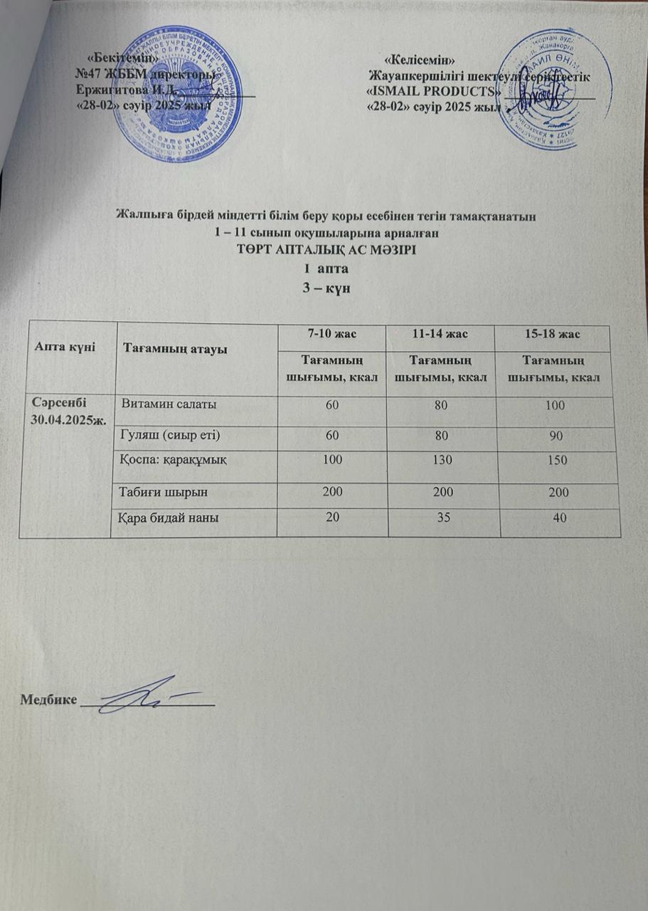 30 сентябрь 2024 Ас мәзірі 1-апта 1-күн