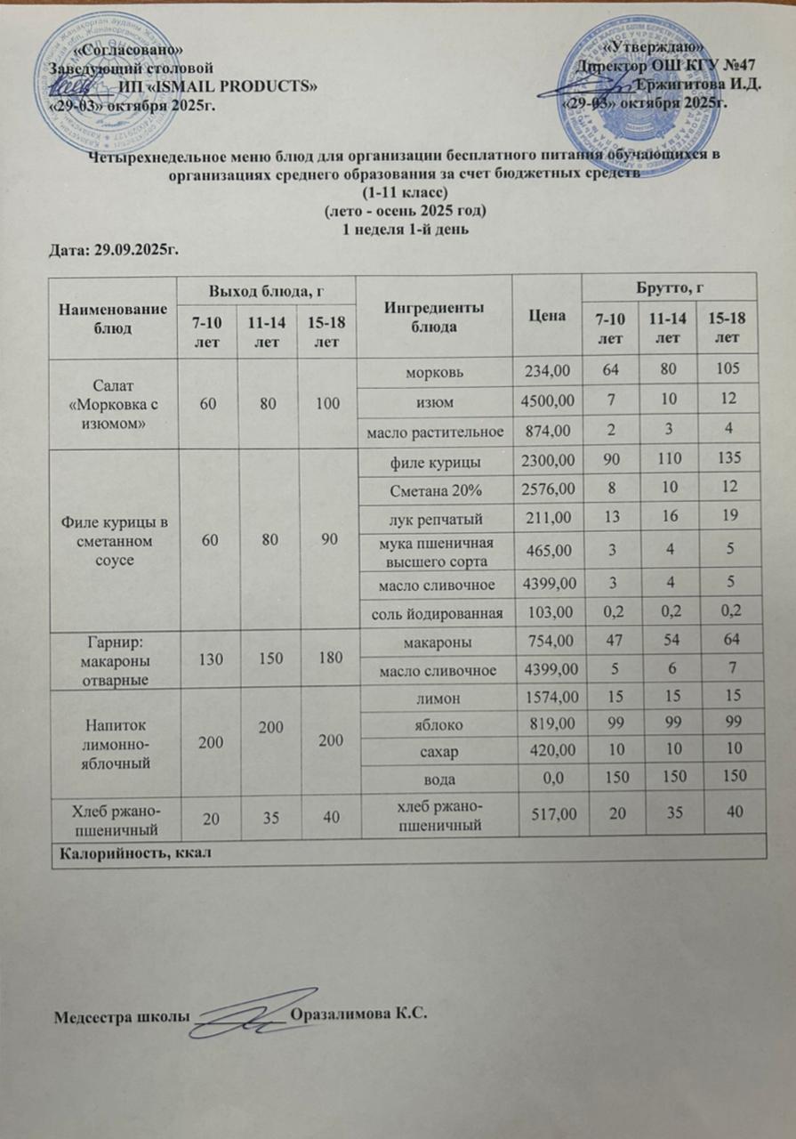 30 сентябрь 2025 Ас мәзірі 1-апта 2-күн