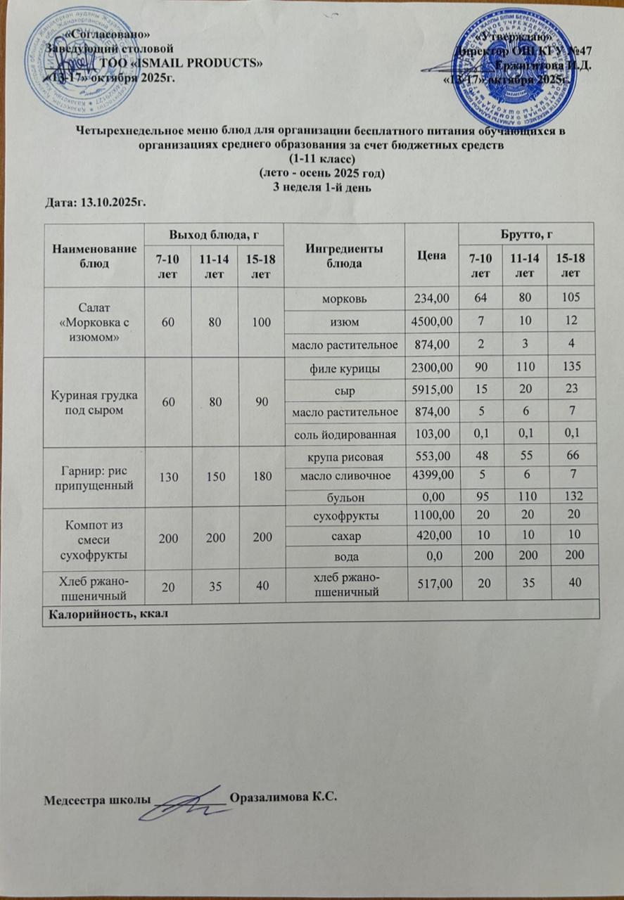 19 сентябрь 2024 Ас мәзірі 1-апта 3-күн