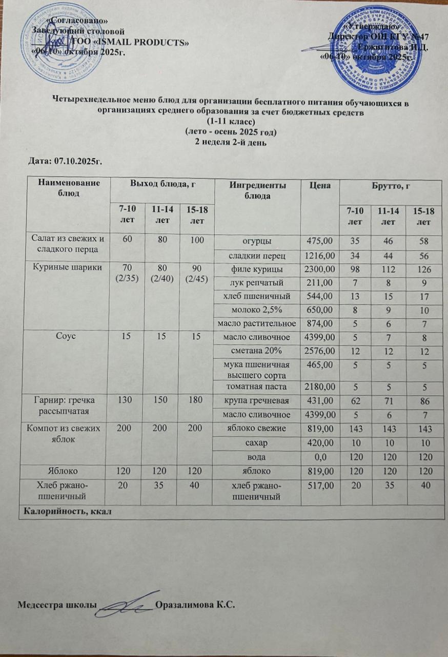 19 сентябрь 2024 Ас мәзірі 1-апта 3-күн