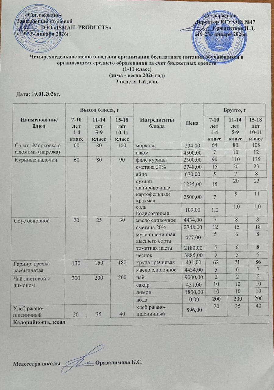 19 сентябрь 2024 Ас мәзірі 1-апта 3-күн