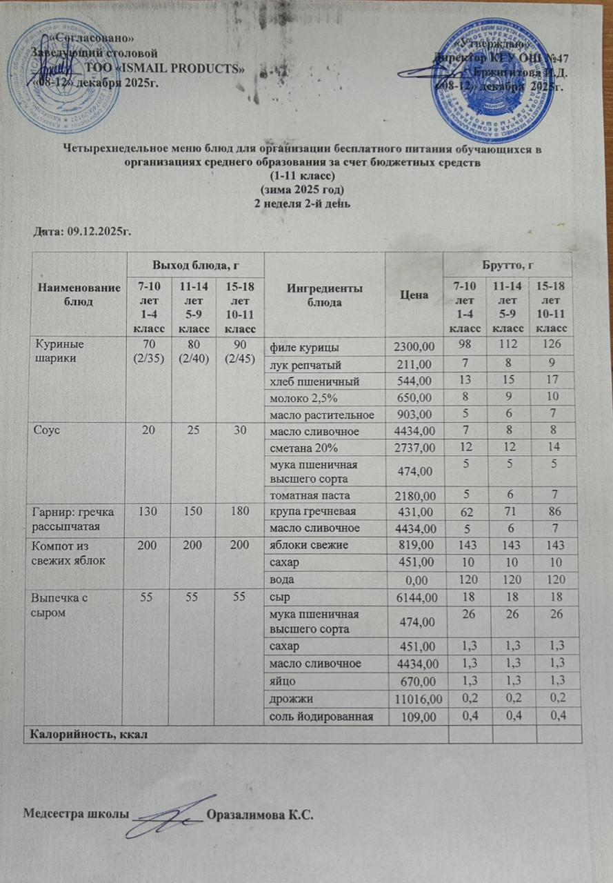 30 сентябрь 2024 Ас мәзірі 1-апта 1-күн