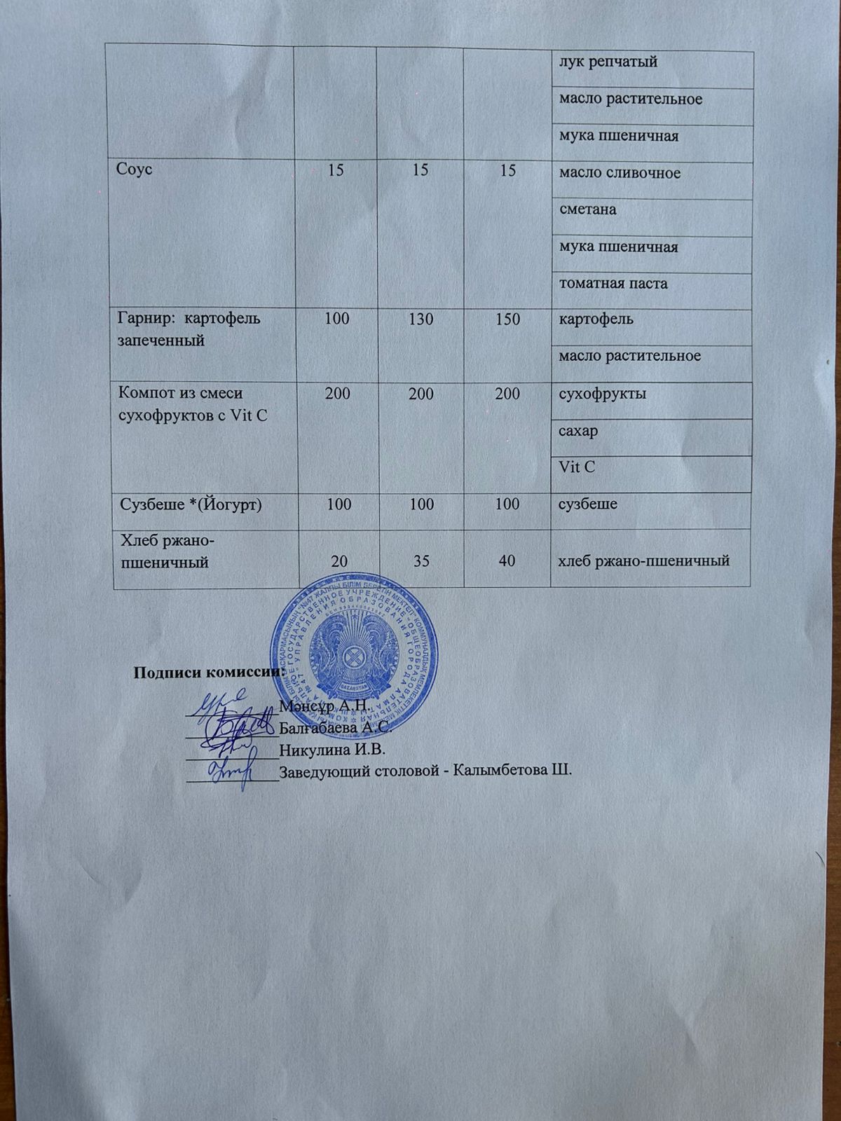 » Тамақтану сапасына мониторинг жүргізу актісі
